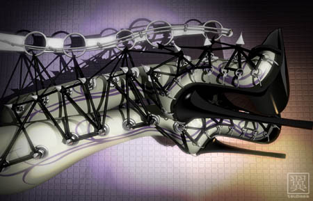 Vrettos Vrettakos showed leather corsetry, seamed and