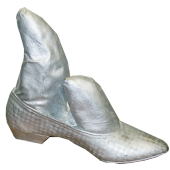 presumably of fur, which formed the boot shape, tied at the ankle with