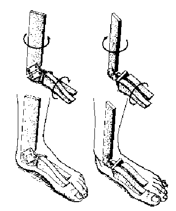 In the foot, these rotations are facilitated by the torque-converter effect, whereby pronation at heel-strike is converted to internal tibial (and subsequently femoral) rotation, and external rotation of the femur at toe-off is converted into supination of the foot. These actions are a consequence of the axes of the talo-crural and talo-calcaneal (subtalar) joints: